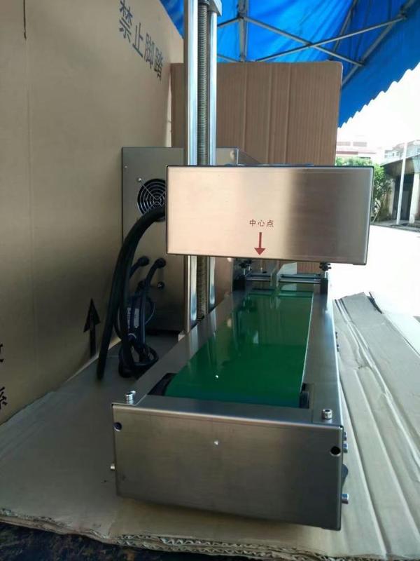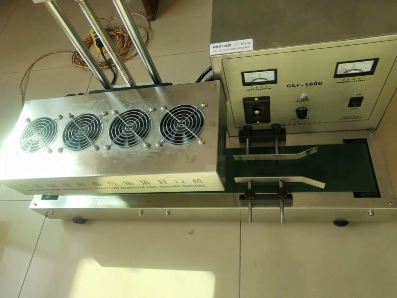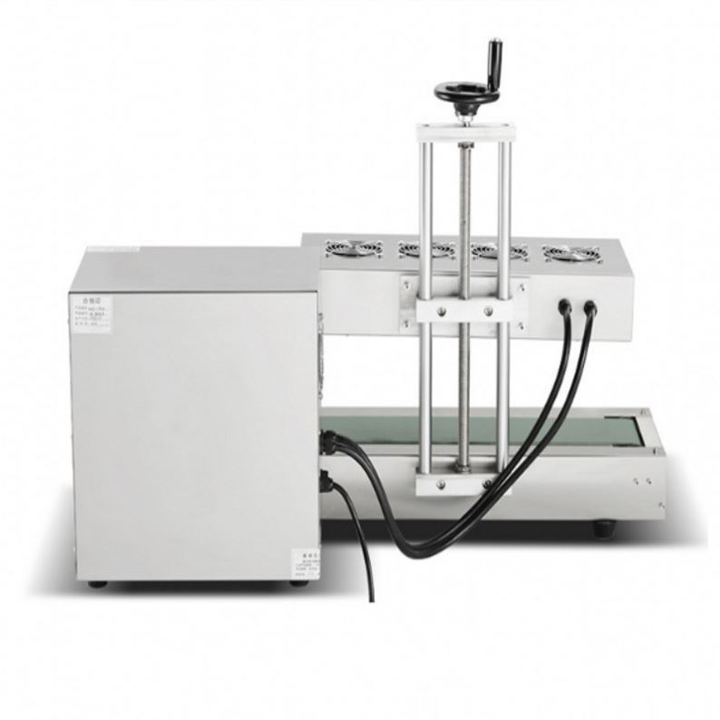 1 ، ضع آلة السدادة الحثية على الطاولة، وقم بتوصيل الجهاز. يجب الانتباه إلى عدم وضع رأس الختم (رأس المقبض) على الجهاز.